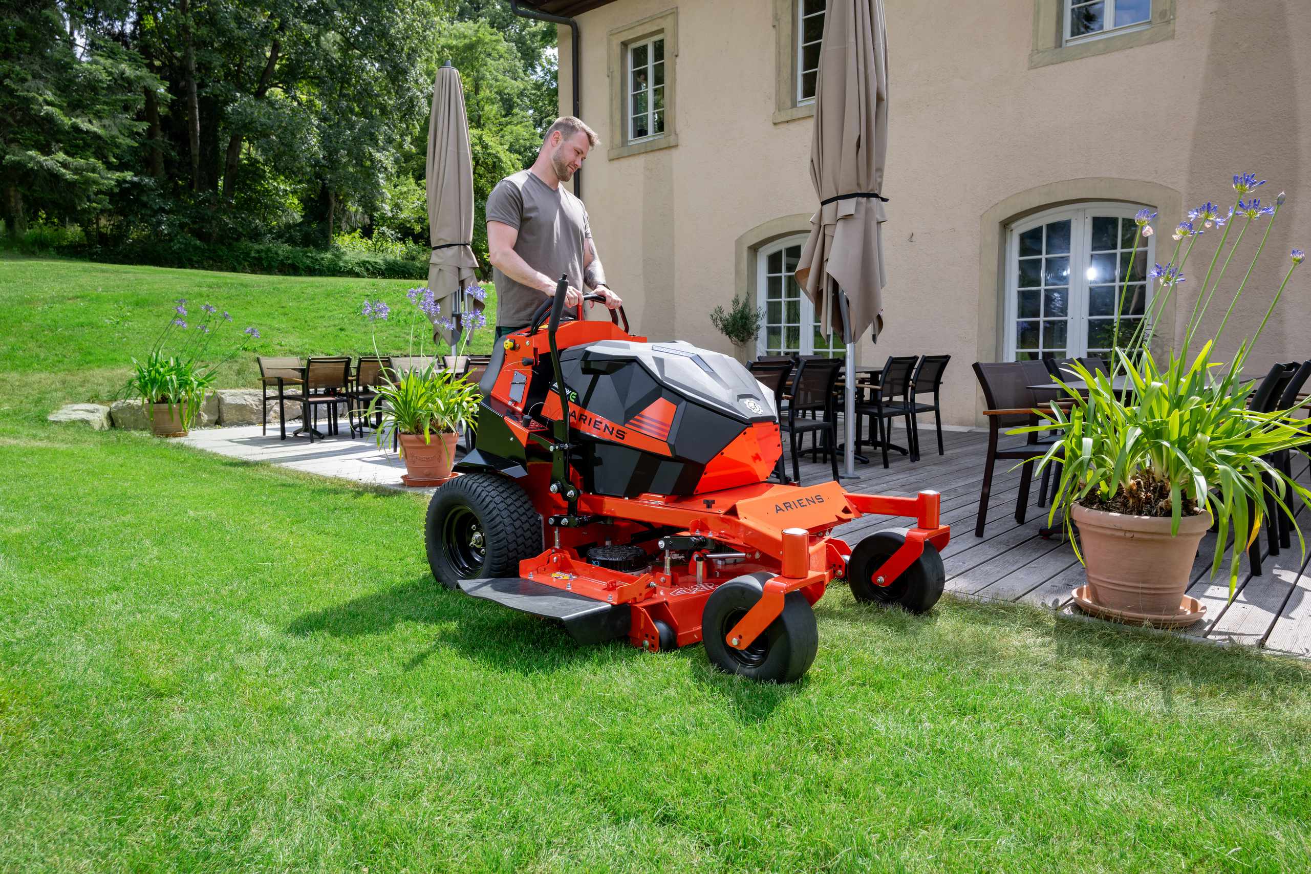 Stand-on-Mäher liegen voll im Trend. Sie sind komfortabel und schnell, dabei aber besonders kompakt, agil und platzsparend. Ihr Rücken und Ihre Muskulatur werden Ihnen die aufrechte Arbeitsposition danken.