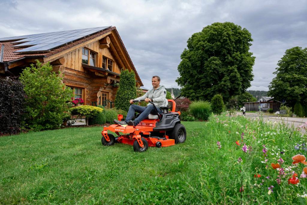 Einer der größten Vorteile eines Aufsitzmähers ist seine kompakte Größe. Aufsitzmäher eignen sich hervorragend für 180°-Wendungen und enge Räume, was sie zu den perfekten Maschinen für baumbestandene oder stark begrünte Gärten macht.