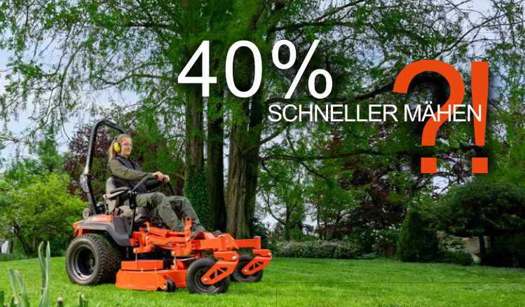 Der Zero-Turn Mäher mit gleicher Mähbreite ist 40% schneller als ein Rasentraktor!