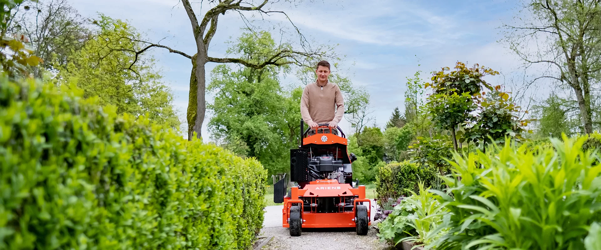 Nutzen Sie alle Vorteile eines Nullwendekreismähers, aber in kompakterer Form eines großen handgeführten Mähers und nahezu perfekter Sicht auf den Schnittbereich. Der ARROW stand-on Mäher kann schnell größere Rasenflächen mähen aber auch kompliziert gestaltete Rasenflächen mit Bäumen, Blumenbeeten und anderen Hindernissen darauf. In vielen Situationen werden Dienstleister mit diesem neuen Maschinentyp schneller unterwegs sein als zuvor.