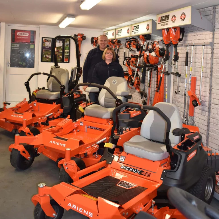 “Nos convertimos en distribuidores de Ariens por casualidad, hace tres años. Teníamos espacio en nuestro stand en la Kent County Show y nuestro representante de ventas sugirió que lleváramos una cortacésped de giro cero Ariens y probáramos el interés. Habíamos oído el nombre Ariens antes, pero no habíamos visto ninguna de sus cortacéspedes de giro cero. El interés que obtuvimos en la feria fue fantástico; vendimos tres máquinas ese día y no hemos mirado atrás desde entonces.