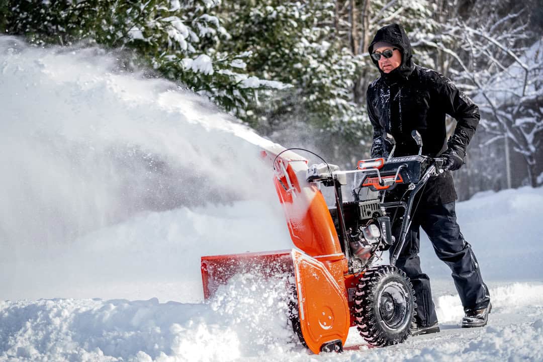 The 35.6 cm steel impeller offers exceptional performance in all snow conditions. It throws snow from 0.9 to 15.2 meters.