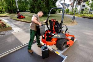 Professional battery-powered zero-turn mower. Compact dimensions. Ideal for many obstacles and uneven surfaces.