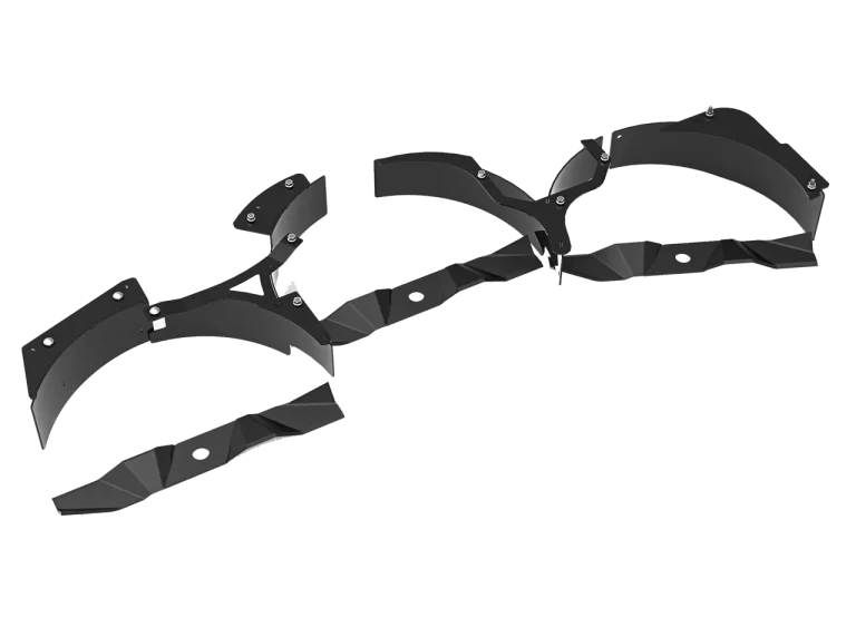 The mowing deck is the most heavily loaded component of a mower. Stability is particularly important here. The ZENITH E has a 14 cm deep, fully welded mowing deck made of 4.5 mm thick sheet steel, 20 mm steel edge, enclosed anti-scalp wheels and a welded 4-point suspension. The FUSIONCORE electric blade motors deliver a maximum of 3 x 3,500 watts when required. To protect the motor in the event of collisions, the blades are mounted on a slip clutch. This significantly reduces hard impacts on the motor. The air flow of the new X-Factor III mower deck with side discharge is optimised for the cleanest cut and lowest noise level.