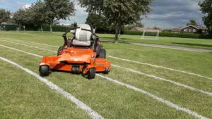 Nemsokára teszteltünk egy Ariens Apex 52 nullafordulatú nyírót az egyik iskolában, amelyet kezelek, és nem csak Paul és én voltunk lenyűgözve attól, amit tudott, hanem az iskola is. A magas fű 6-12 hüvelyk magas volt, vastagabb alul, ahol szeptember óta nem nyírták. Az Apex könnyedén megbirkózott a fűvel, kiváló végeredményt hagyva. Tudtam, hogy ez a gép pontosan az, amire a vállalkozásnak szüksége van. Paul, aki szintén nagyon jól ismeri a mai piacon kapható nyírógépeket, megjegyezte, hogy még nem látott olyan gépet, amely egy átmenettel ilyen vágást és végeredményt tudna elérni.