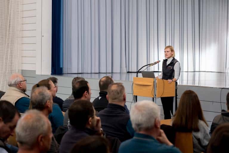 A Működési Igazgató, Dr. Katrin Voß bemutatta a gyártósor főbb számadatokat és frissítéseit. Jelentése bemutatta, hogyan növelték a termelést a hatékonyabb munkafolyamatok, az új szerelőszalag elrendezések és a finomított műszakstruktúrák - megerősítve a Bühlertann-i telephely szerepét az AriensCo globális működtetésében.
