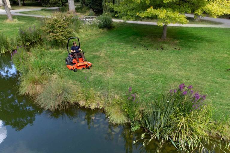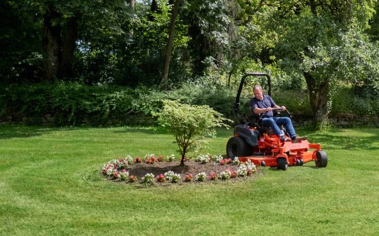 Tagliaerba Zero-Turn con batteria intercambiabile e scarico posteriore. Progettato per lavorare un’intera giornata.