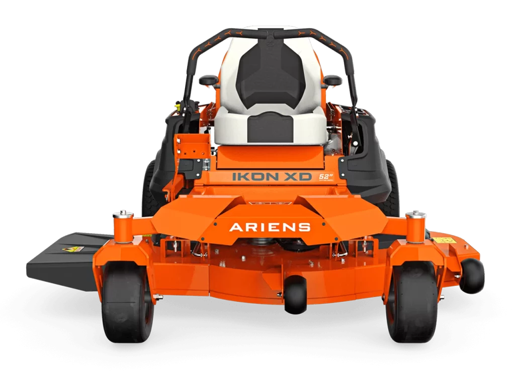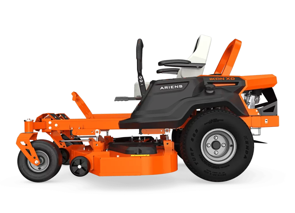 With its fully welded tubular steel frame and cutting widths of 107 cm (42″) or 132 cm (52″), the IKON XD is ideal for gardens of any size. In terms of features, the IKON XD is modelled on its professional brothers. The particularly comfortable seat with high backrest and the extra-large tyres ensure a comfortable ride, even over several hours.