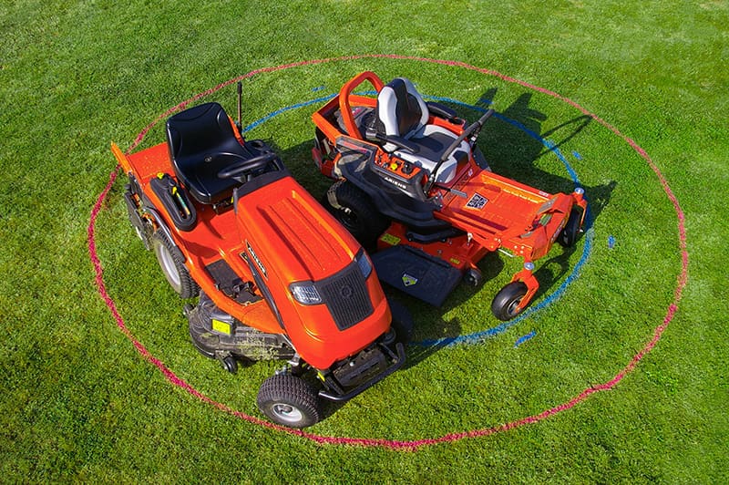 The zero-turn mower with the same cutting width is 40% FASTER than a lawn tractor!