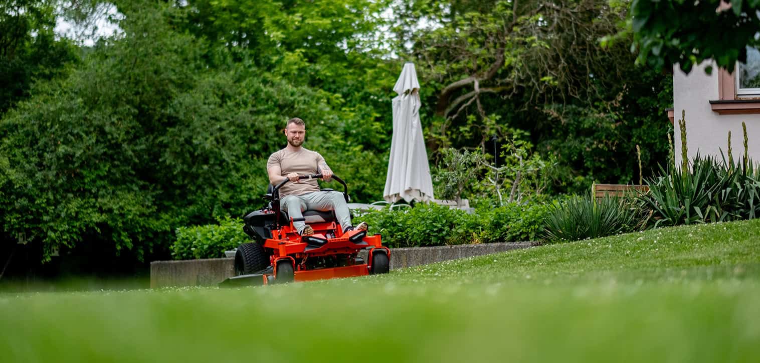Zero-turn mowers are not just for large areas. The EDGE model with a cutting width of 86 cm is suitable for areas from approx. 800 m² and narrow passages.